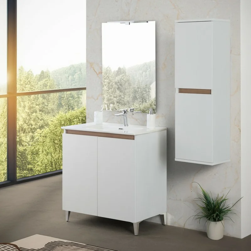 Mobile bagno a terra 80 cm bianco e rovere con 2 ante soft-close Kleo