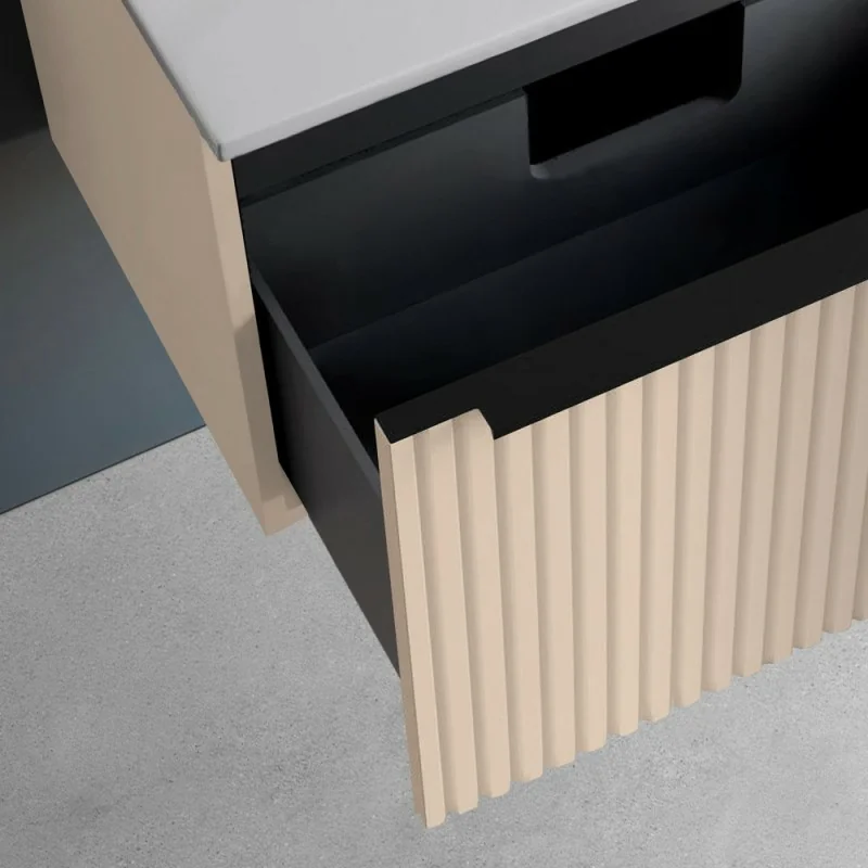 Mobile bagno sospeso 90 cm cappuccino cannettato con cassetto, specchio e lavabo Nara
