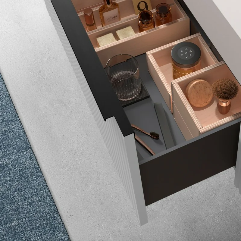 • Cassetto con maniglia in alluminio nero opaco da 79,4 cm