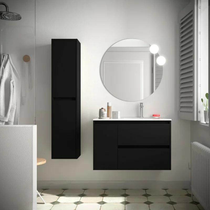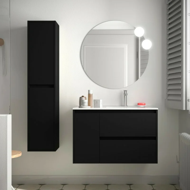 Mobile bagno sospeso 85 cm nero con lavabo un anta e specchio inclusi linea Gaya