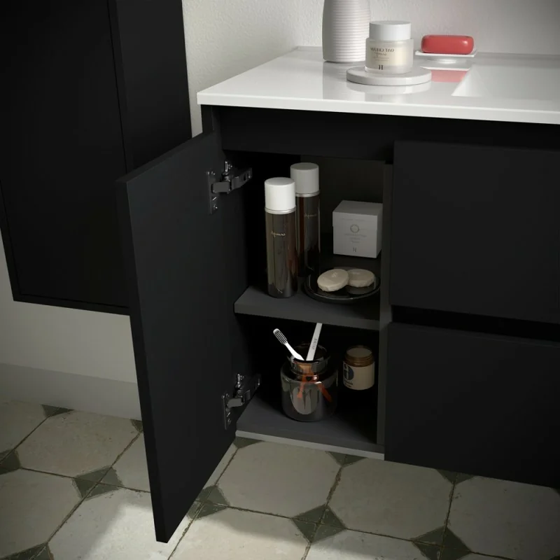 Il mobile sospeso Gaya è la soluzione ideale per chi cerca design e praticità in bagno. Con i suoi 85 cm, offre un'organizzazione impeccabile grazie a due ampi cassetti soft close e un'anta capiente, mentre il lavabo integrato e lo specchio abbinato creano un ambiente armonioso e funzionale. Valorizza il tuo spazio con un tocco di eleganza sospesa. Rubinetteria non inclusa.
