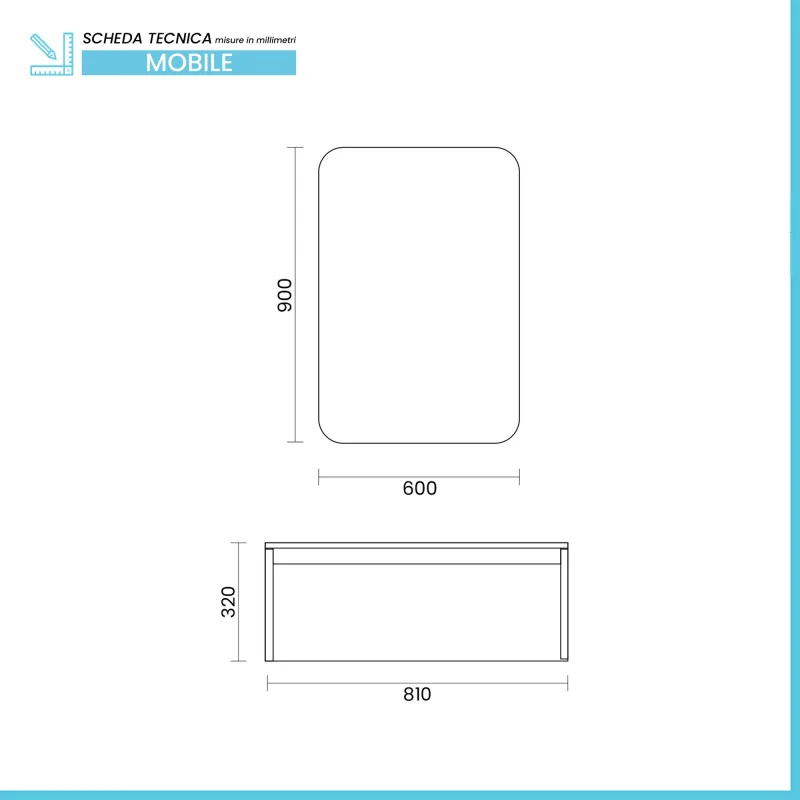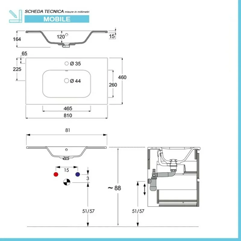 • Dimensioni mobile lavabo: L 81 x p 47 x H 32 cm;