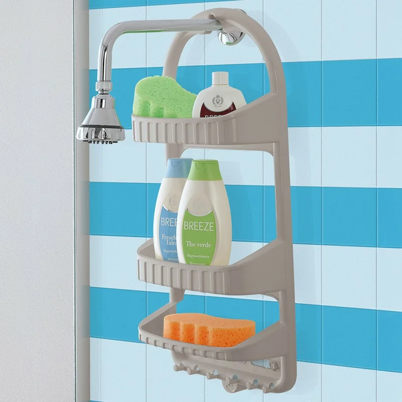 Portasapone per doccia tortora con 3 ripiani e 6 ganci lato inferiore