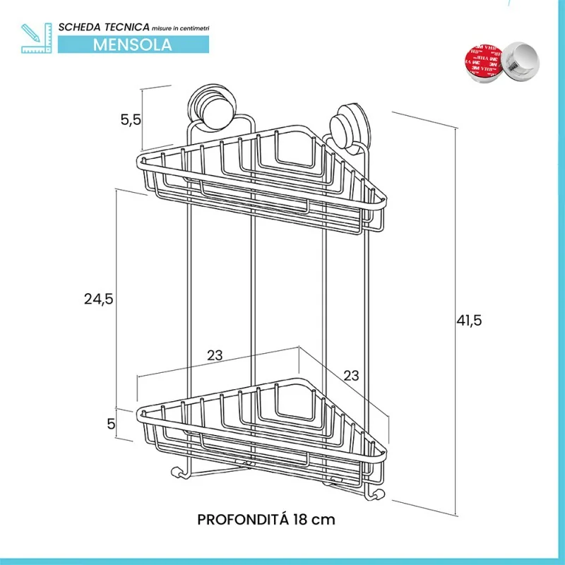 Mensola doccia angolare caratteristiche tecniche: