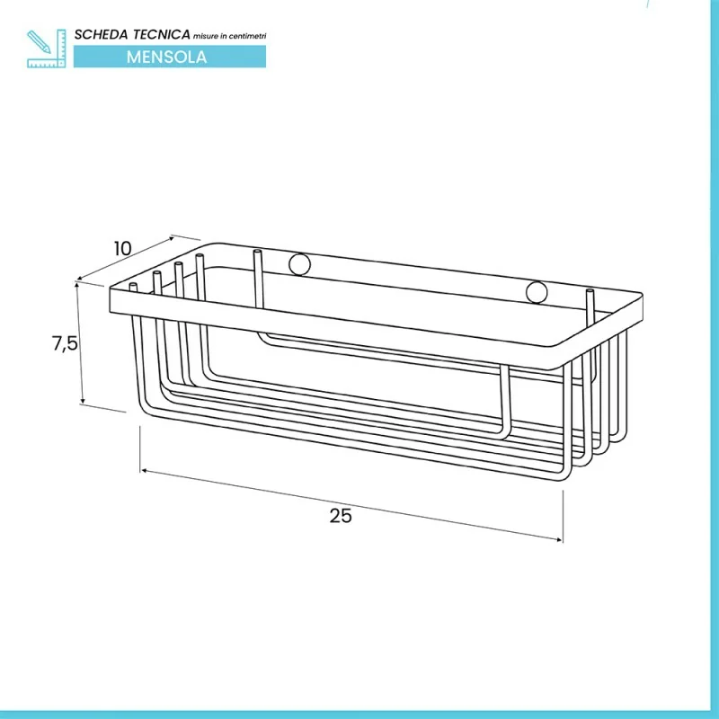 • Dimensioni: L 25 x p 10 x H 7,5 cm;