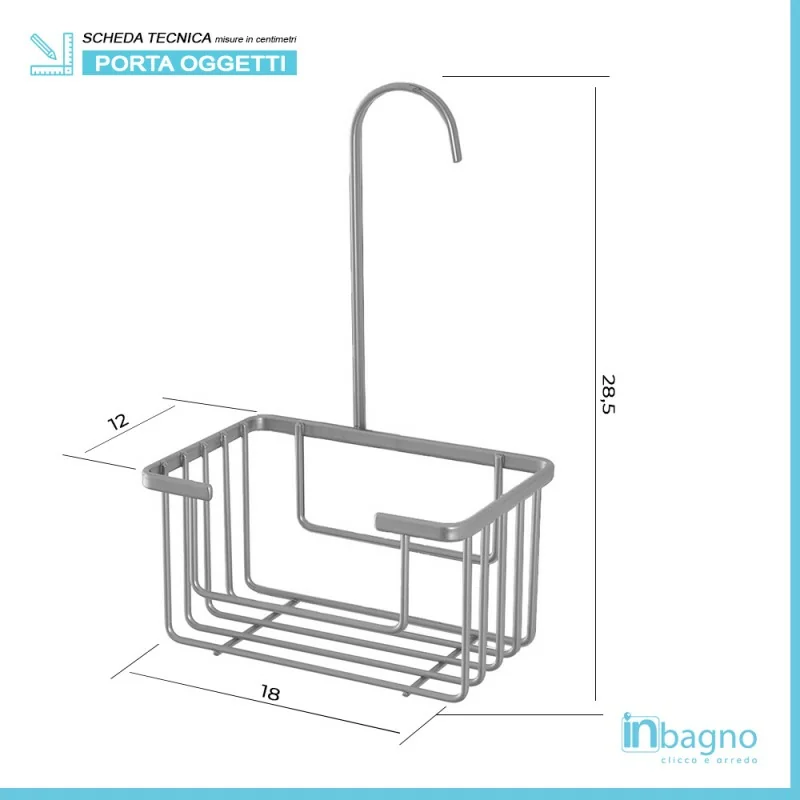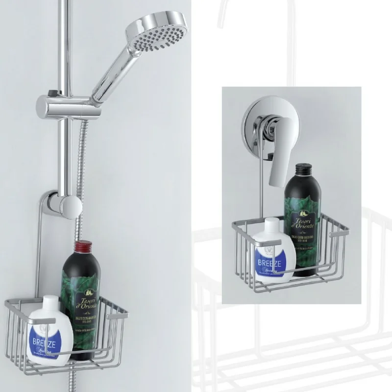 La mensola doccia è un cestino portaoggetti con gancio,da appendere con estrema facilità a qualsiasi colonna o saliscendi doccia,ideale per contenere con ordine e sicurezza tutti i prodotti per la doccia.