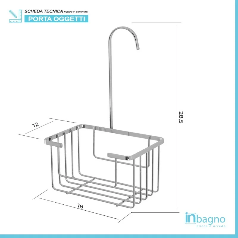 Cestino portaoggetti con ripiano e installazione a gancio,disponibile con finitura silver e cromata