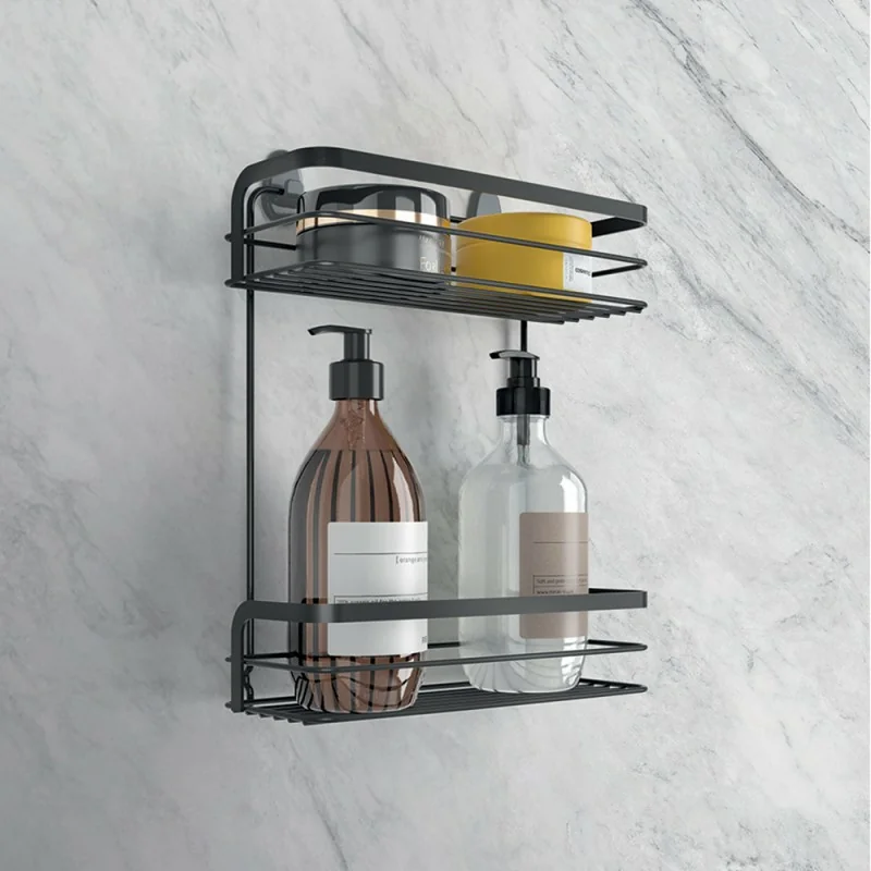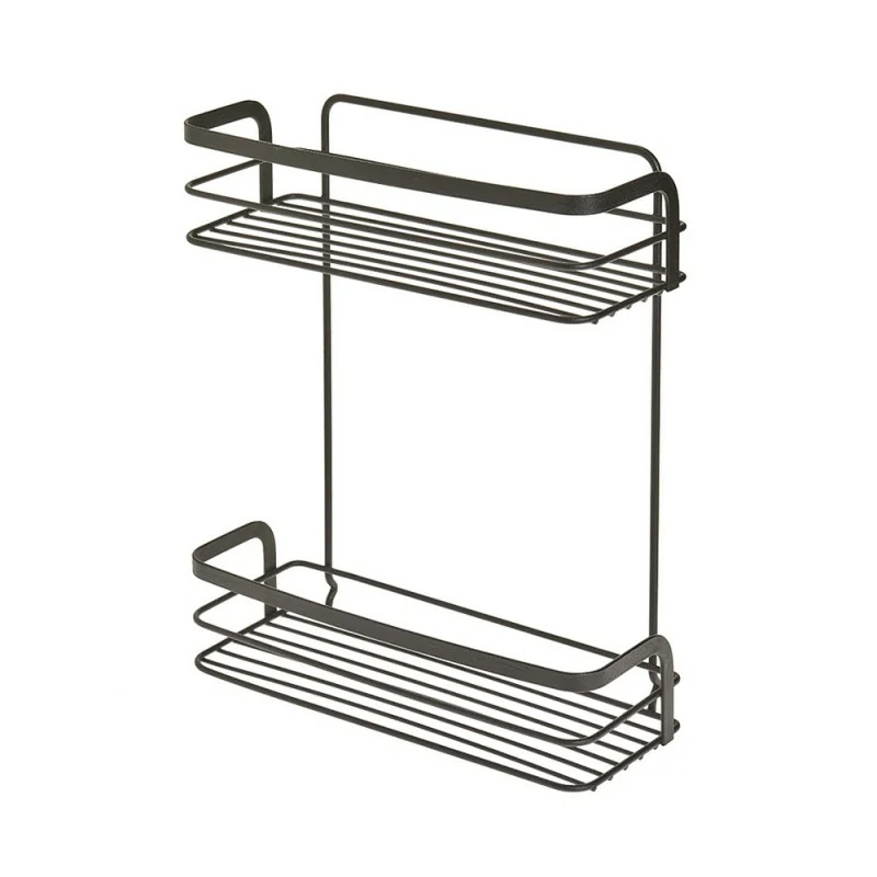 Mensola portaoggetti per doccia in acciaio nero con 2 ripiani alti