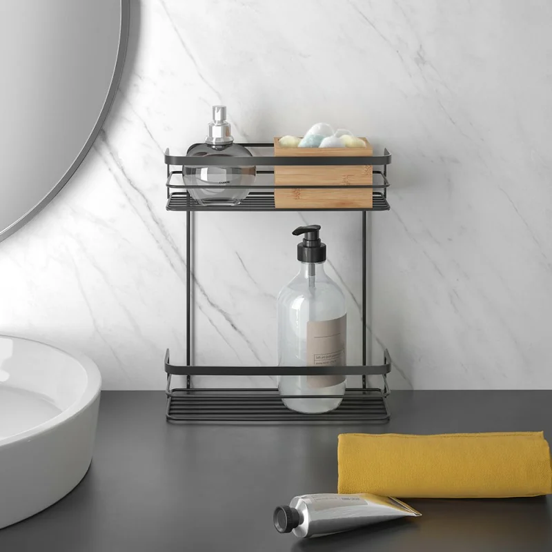 Mensola per doccia rettangolare Origin Lava con 2 ripiani in acciaio nero