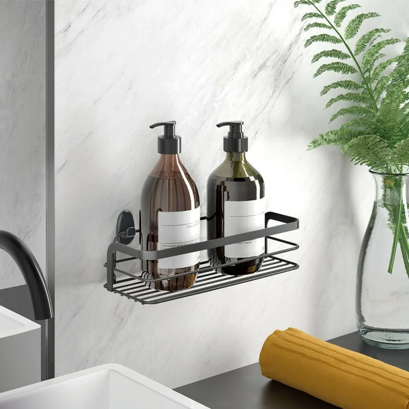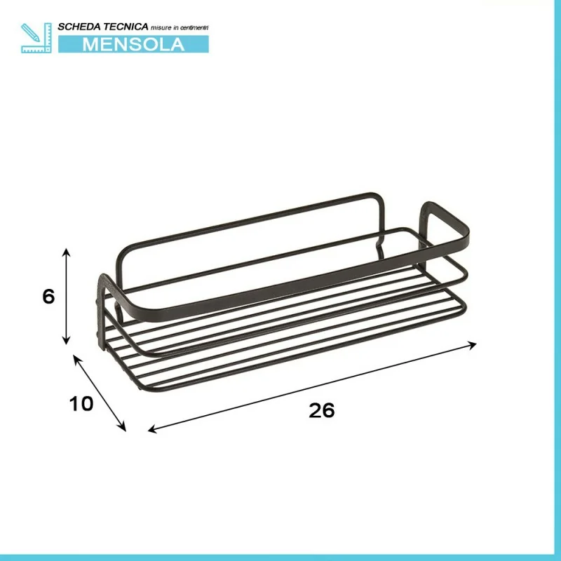 Mensola per doccia rettangolare con ripiano in acciaio nero opaco