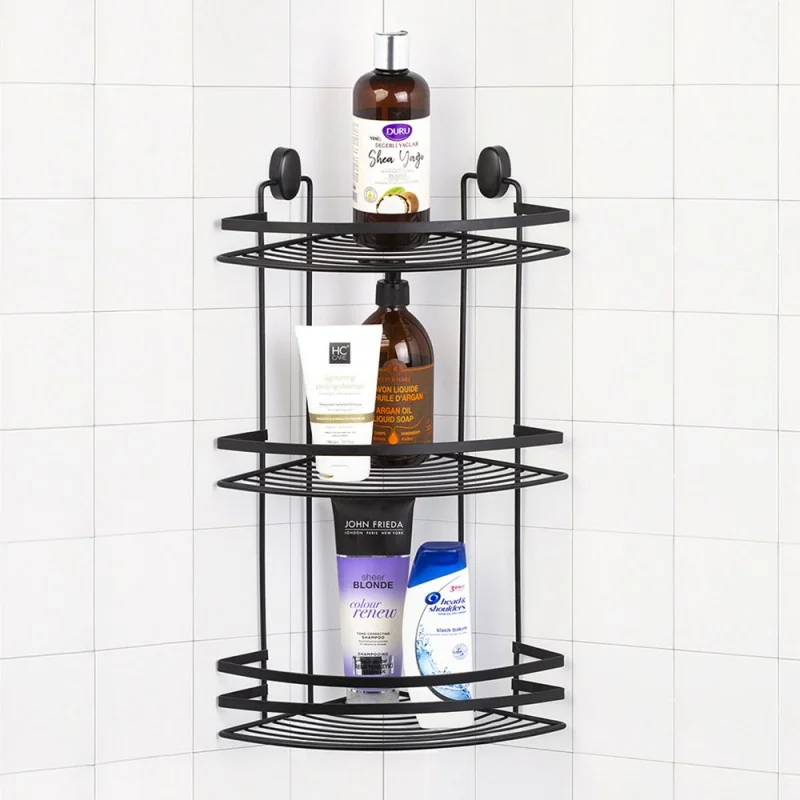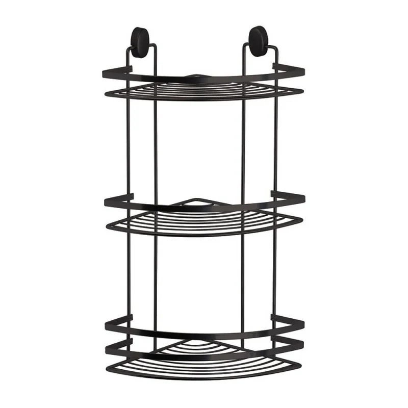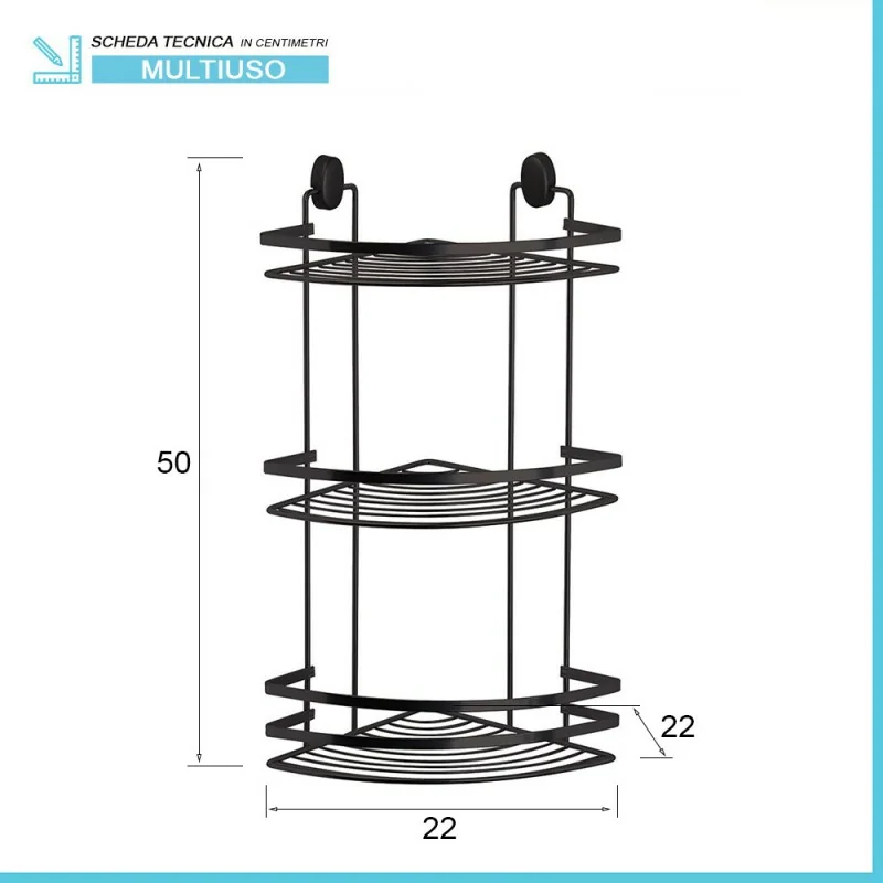 Mensola doccia angolare nero con 3 ripiani e ganci a parete inclusi