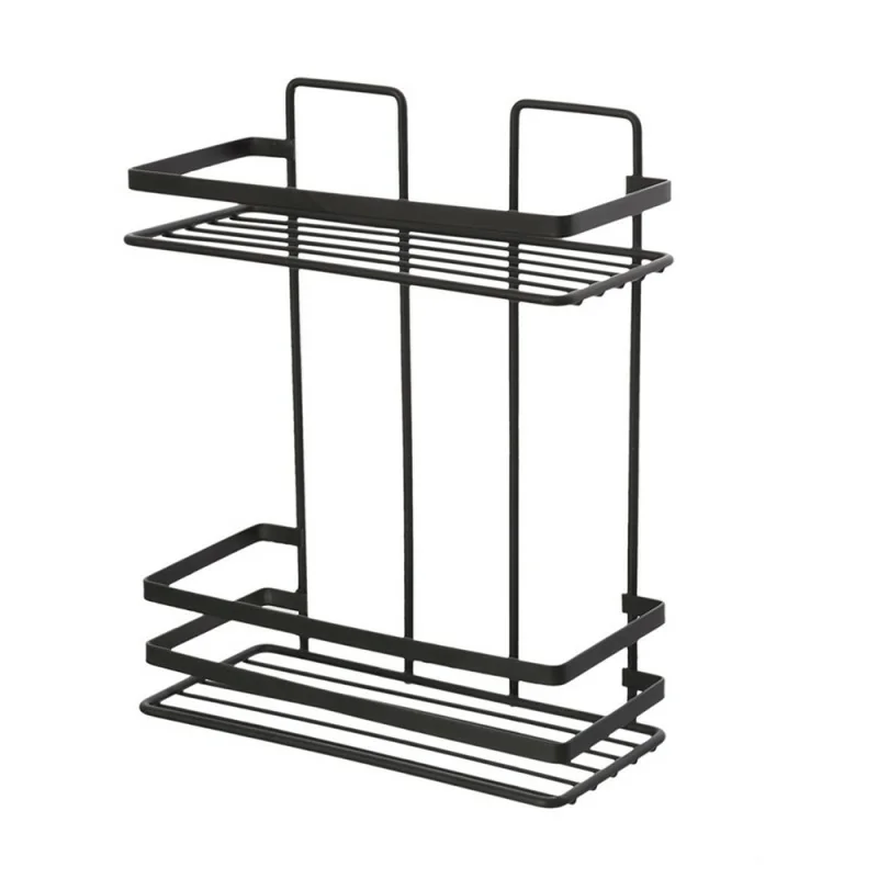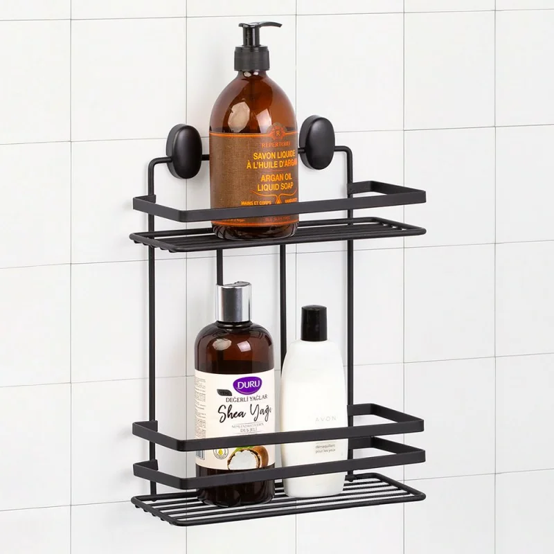 Mensola per doccia nero opaco con 2 ripiani e fissaggi inclusi