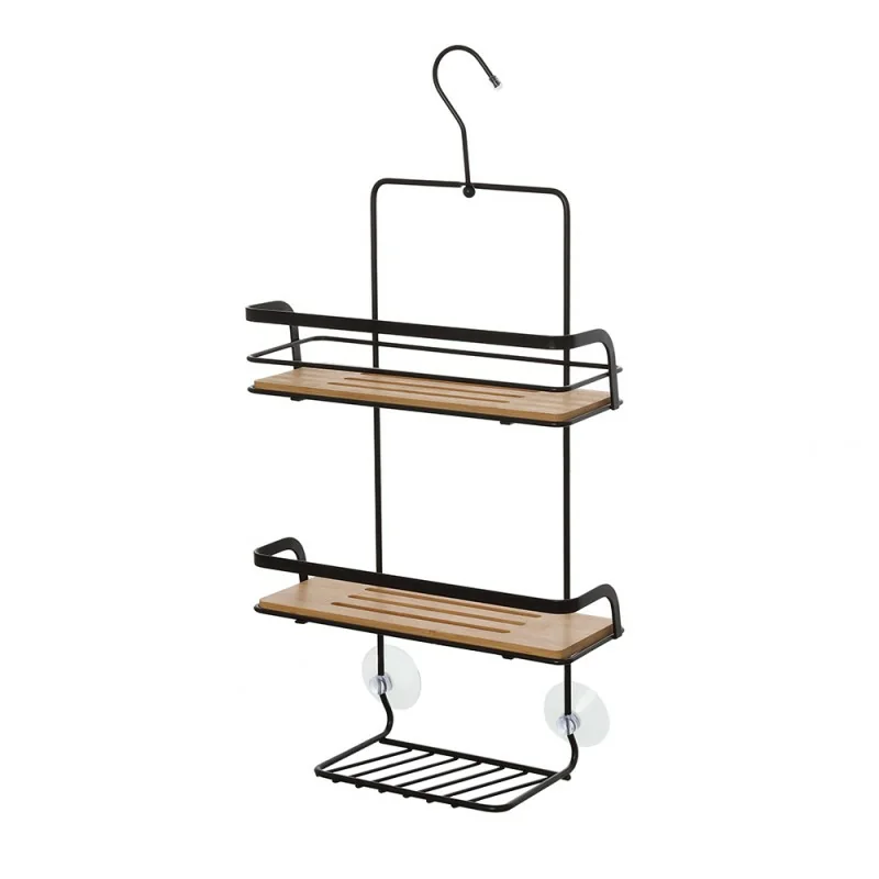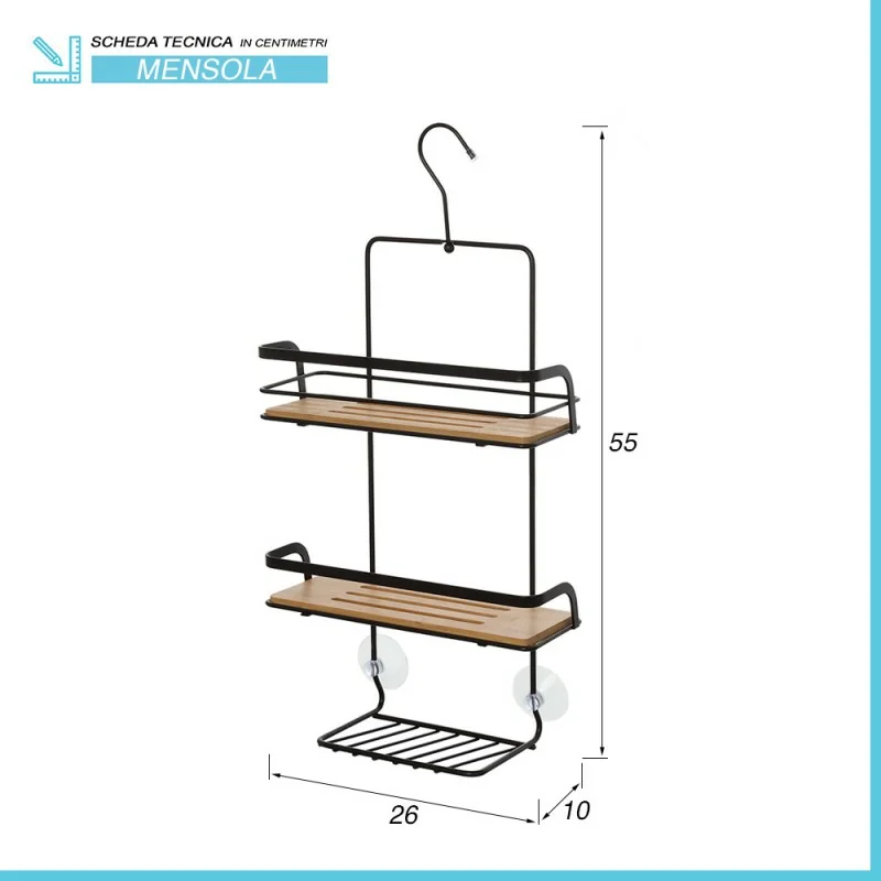 Mensola doccia in acciaio nero e bambù con gancio e ripiani Haiti