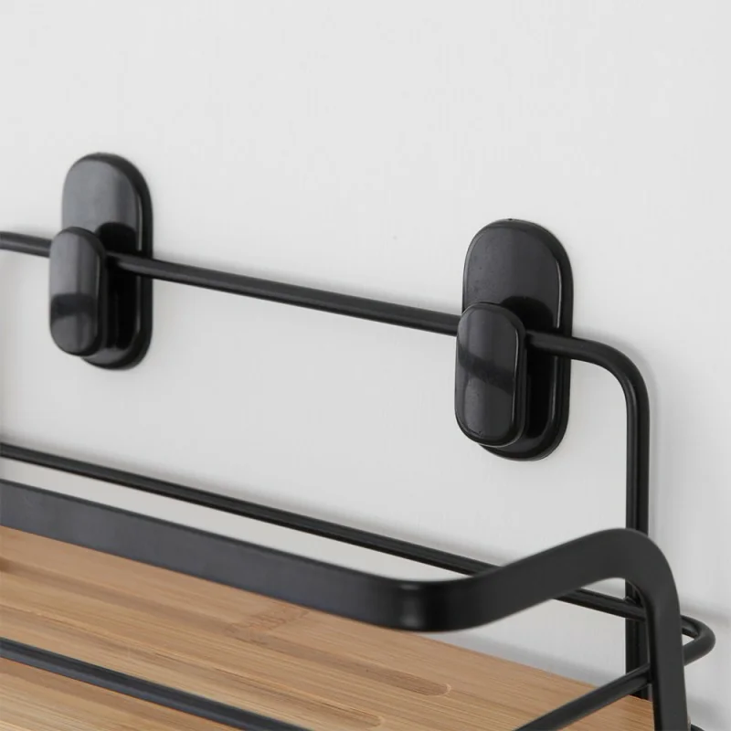 Mensola doccia rettangolare in acciaio nero e 2 ripiani in bambù Haiti