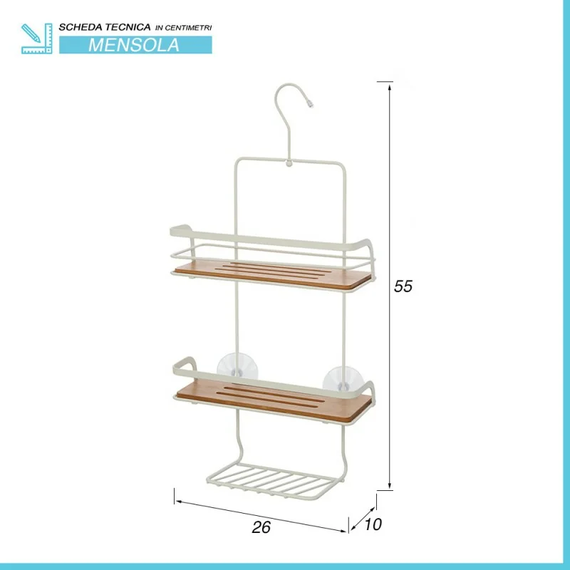 Portaoggetti multiuso per doccia con tre ripiani,installazione con gancio e ventose incluse