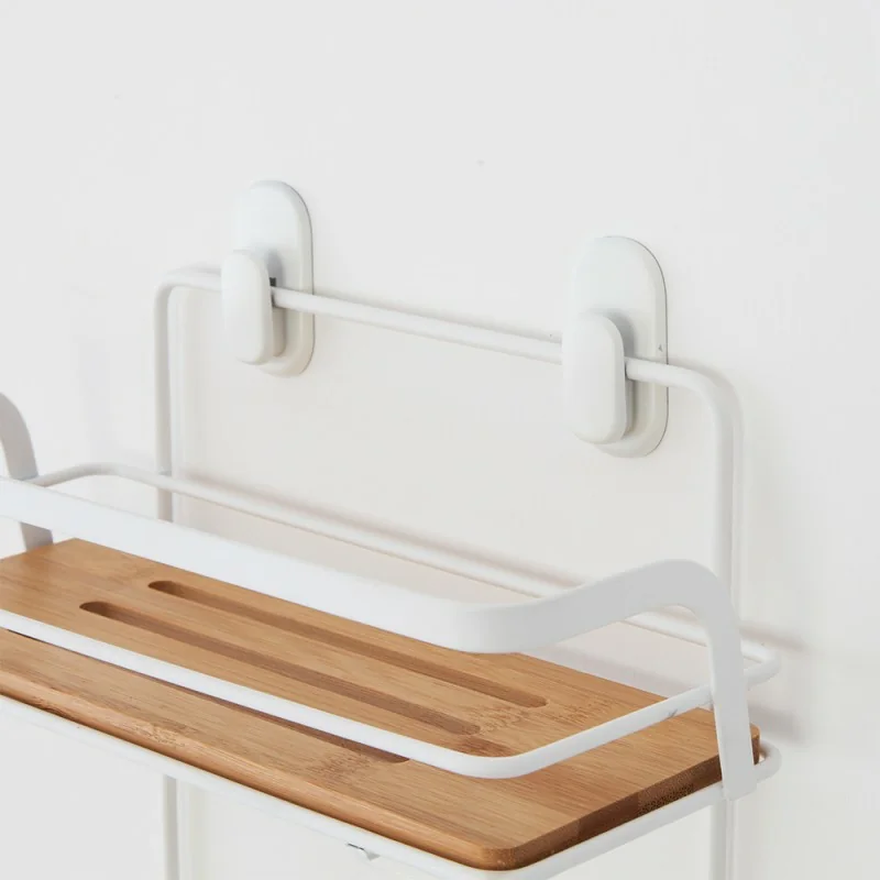 Mensola doccia rettangolare in acciaio bianco e 2 ripiani in bambù Haiti