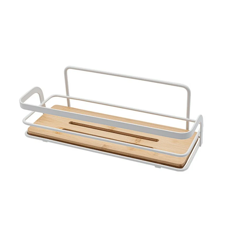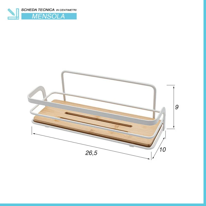 Mensola doccia rettangolare in acciaio bianco e ripiano in bambù Haiti