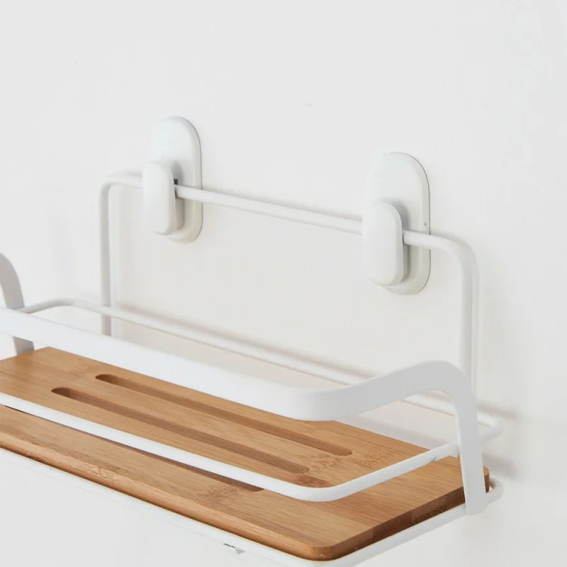 Mensola doccia rettangolare in acciaio bianco e ripiano in bamboo Haiti