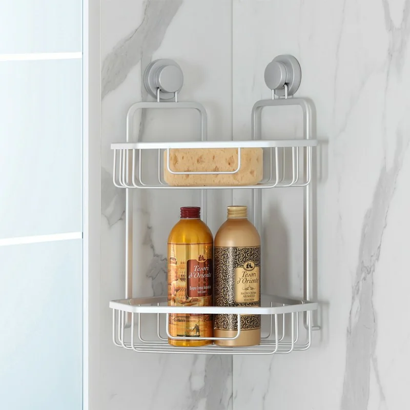 Griglia doccia portaoggetti angolare in acciaio argento doppio fissaggio