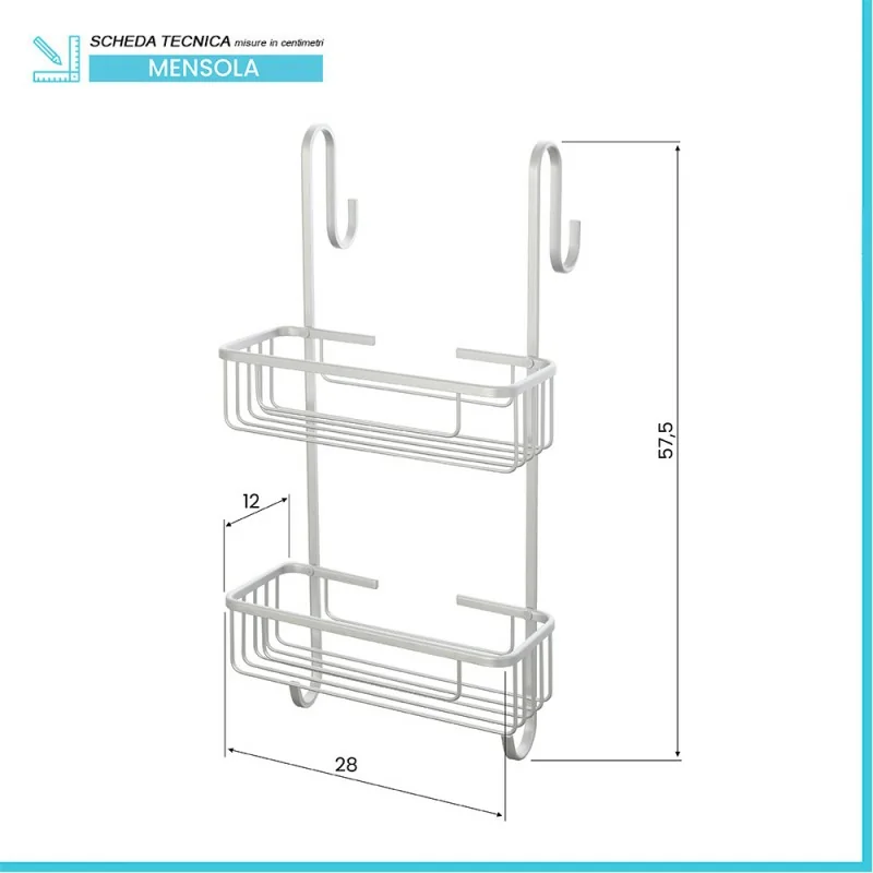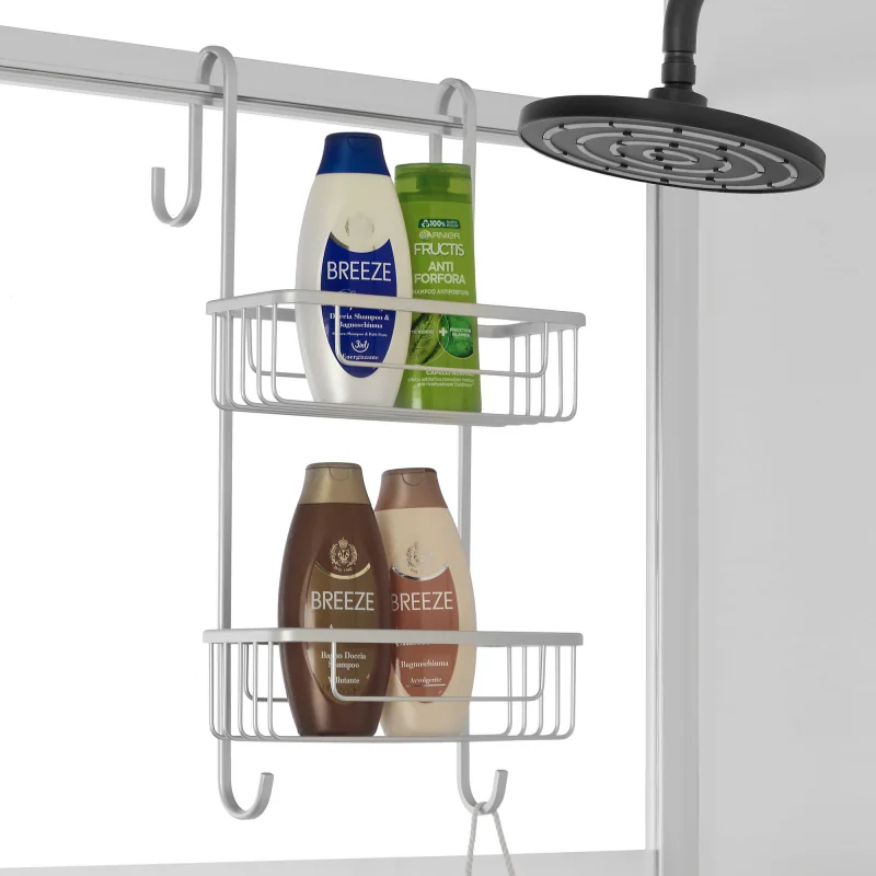 La mensola proposta è un portaoggetti doccia dalla forma rettangolare, da installare direttamente sul box doccia e cabina doccia utilizzando gli appositi ganci. La griglia doccia è realizzata in acciaio con due ripiani particolarmente capienti, caratterizzati da griglie vuote che consentono il drenaggio dell’acqua ed evitano l’assenza di uno spiacevole ristagno.