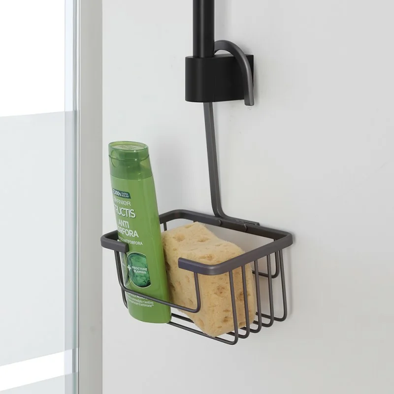 Portaoggetti doccia rettangolare a 1 ripiano con gancio in acciaio nero opaco
