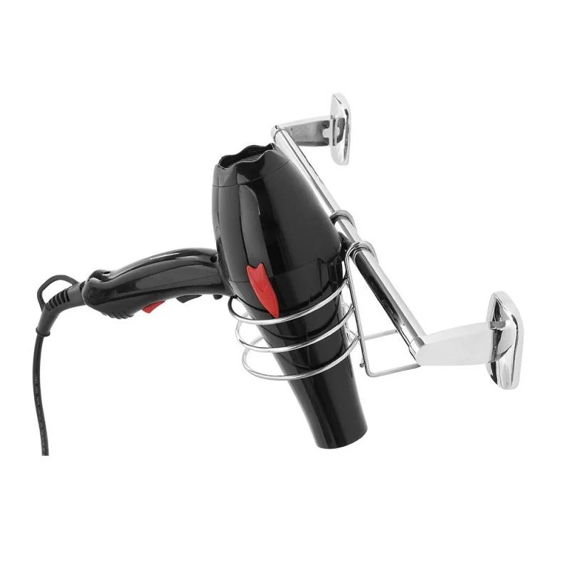 Il porta asciugacapelli ospita la maggior parte dei phon in commercio e dispone di pratico gancio inferiore che può essere installato direttamente in appoggio a qualsiasi asta o barra portasciugamani,per un fissaggio veloce e senza alcuna foratura.