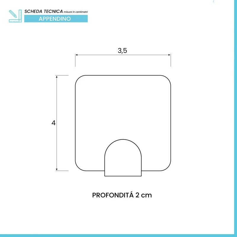 • Dimensioni: L 3,5 x H 4 cm x P 2cm;