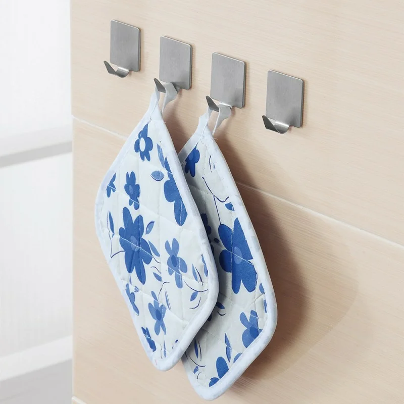 Set con 4 ganci multiuso per bagno,cucina o lavanderia,libera installazione con adesivo incluso