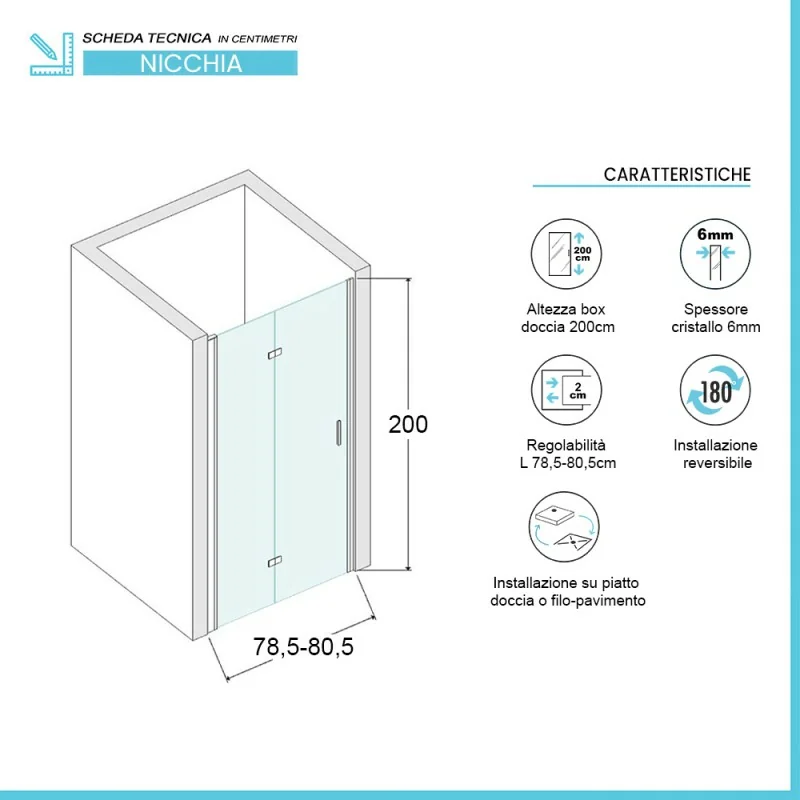 Porta doccia nicchia 80 cm soffietto caratteristiche tecniche: