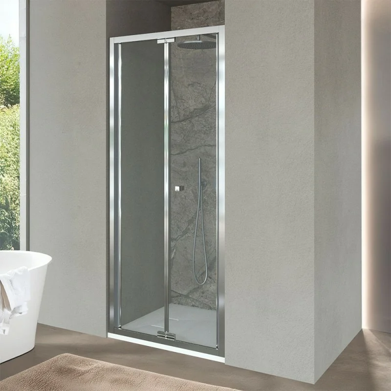 La nicchia doccia Ted è una porta a soffietto con installazione reversibile e tolleranza di regolazione pari a 2 cm,ideale per ottimizzare eventuali pareti fuori squadro. L’apertura a libro della porta è accompagnata da pratica maniglia a pomello con finitura cromato lucido.