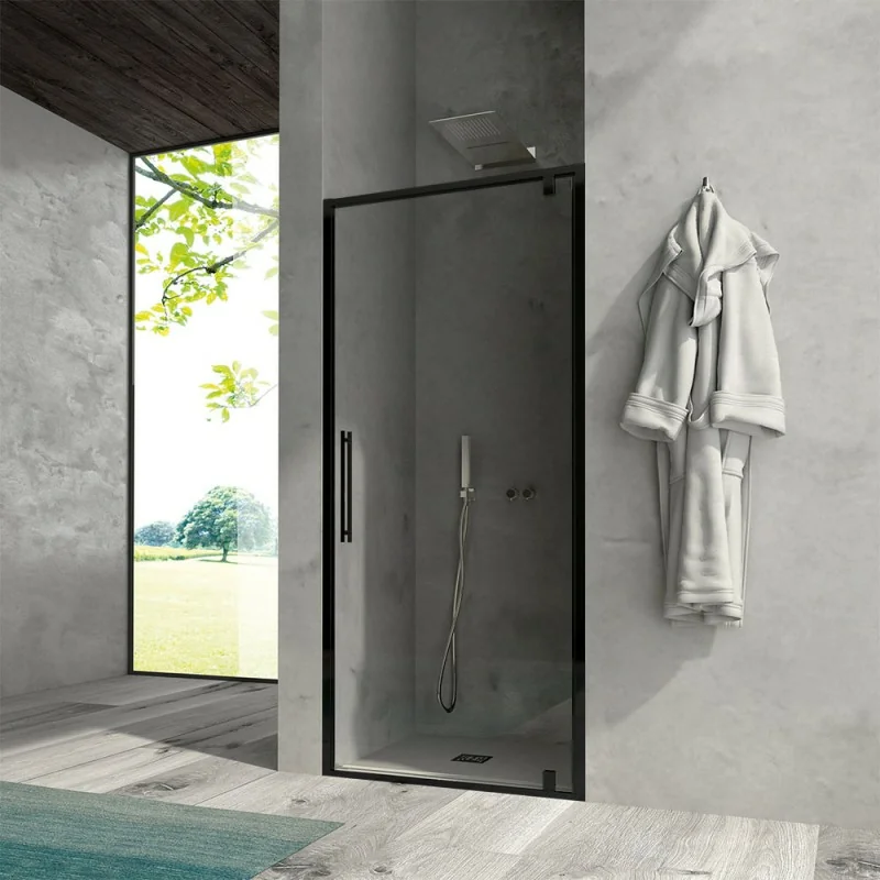 Quella proposta è una porta doccia per nicchia in cristallo temperato con uno spessore di 6 mm,certificato per garantire al massimo la sicurezza nell’uso quotidiano. L’eleganza del cristallo si unisce al profilo e alla maniglia con finitura nero opaco,rendendo il box doccia un complemento d’arredo con un design davvero raffinato.