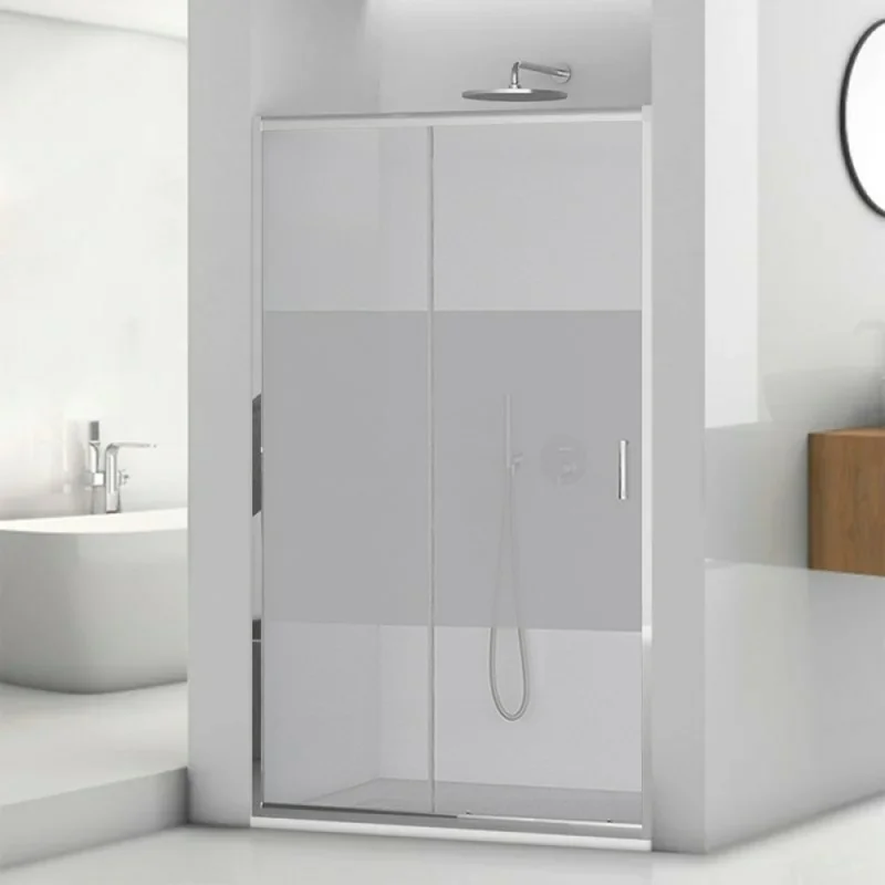 Porta doccia nicchia 120cm in vetro temperato serigrafato scorrevole con profilo cromo Tay