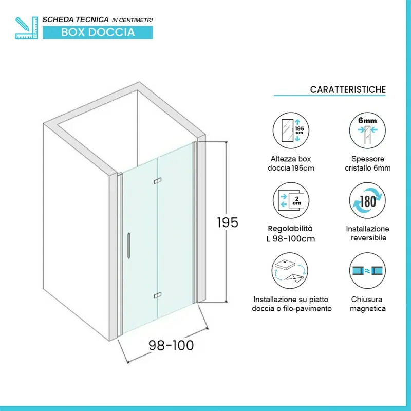 • Tipologia: box doccia per niccia con porta a soffietto;