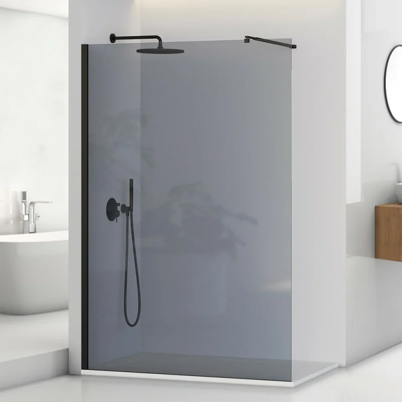 Doccia Walk-In 140 cm nero opaco con vetro fumè H 200 cm  Tay