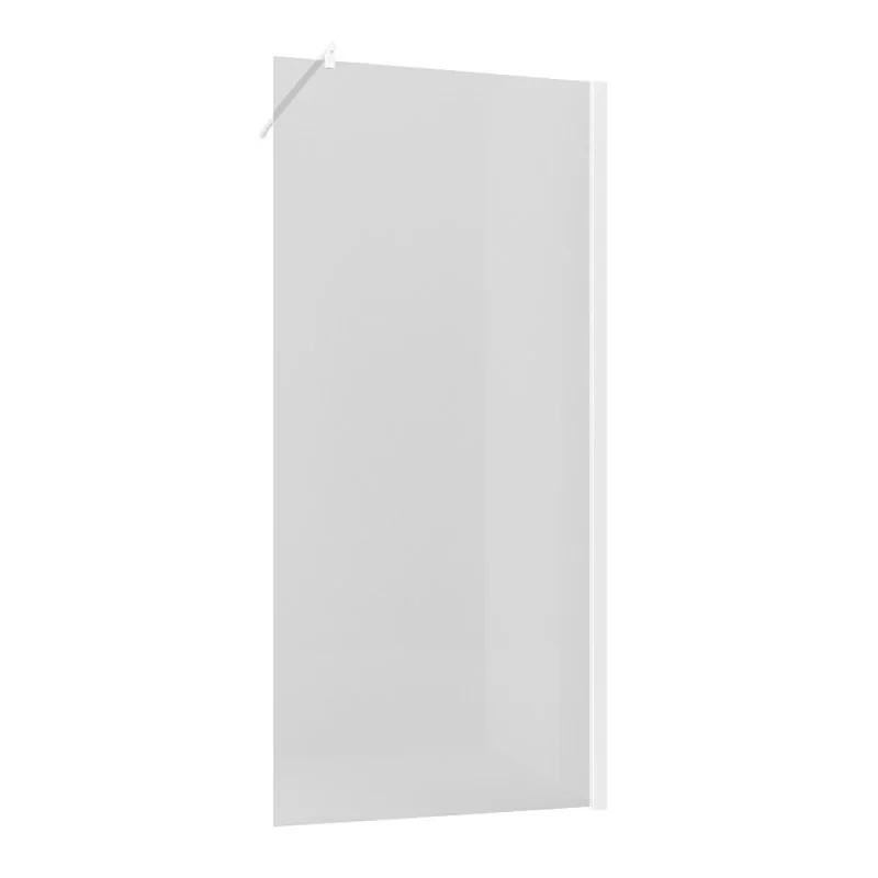 Parete doccia fissa walk-in Klug da 77,3 cm (H 200 cm) in cristallo trasparente da 6 mm con elegante profilo bianco. Include braccio di supporto telescopico regolabile (90-120 cm) per garantire stabilità e un design minimale.