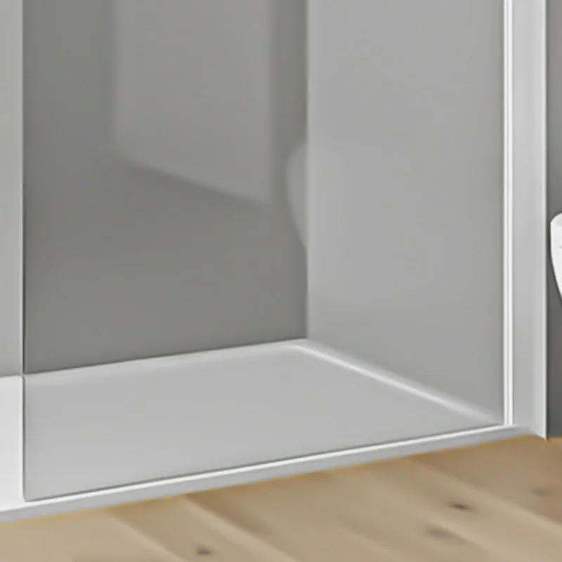 La linea Klug è la soluzione per una doccia a pavimento moderna. Parete fissa da 77,3 cm per installazione ad angolo con elegante profilo bianco. Il cristallo temperato trasparente da 6 mm e l'altezza di 2000 mm donano massima luminosità e un impatto visivo minimale.