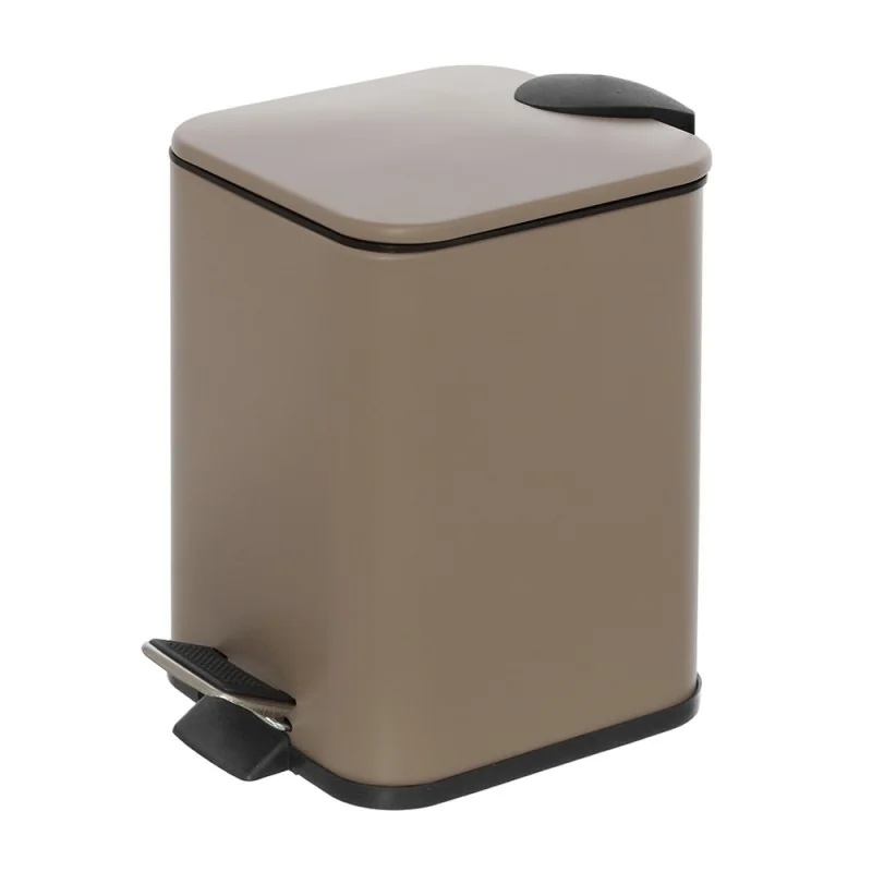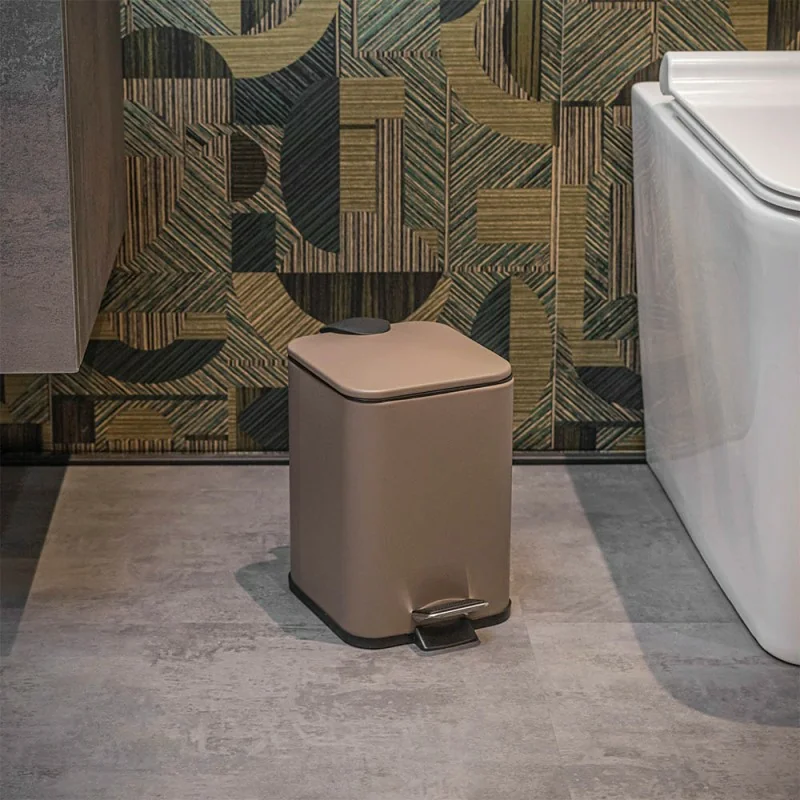Pattumiera bagno 3lt in acciaio tortora con apertura a pedale e cesto estraibile