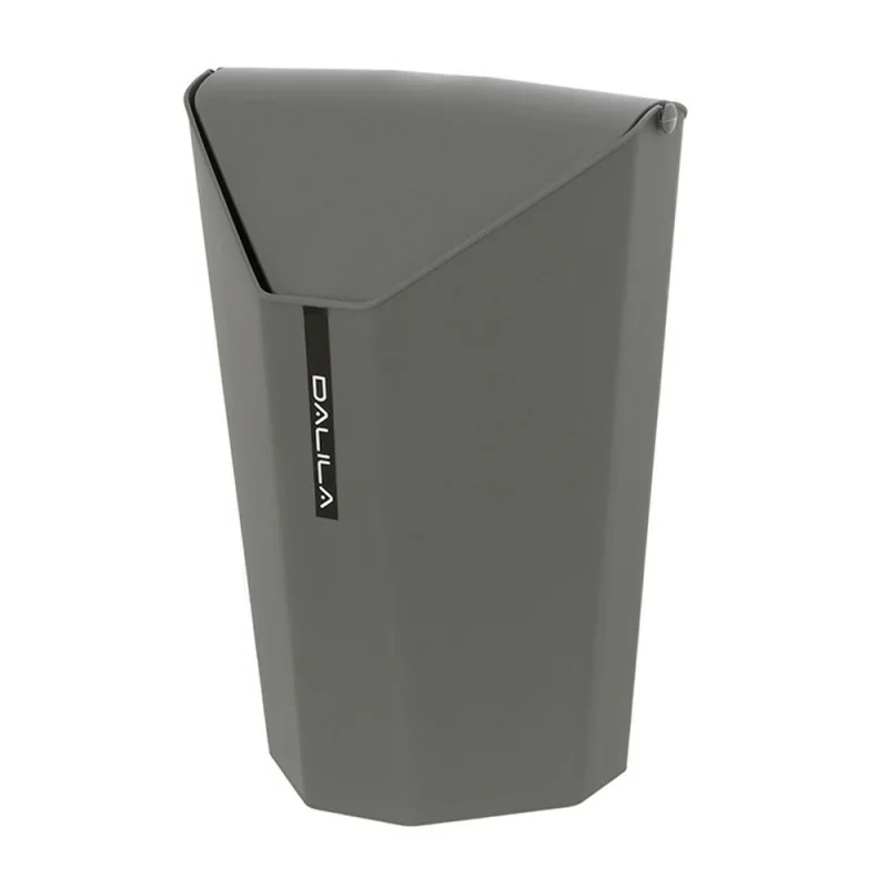 Pensata per unire funzionalità e stile, questa pattumiera in plastica grigia da 6,5 litri si distingue per il suo design contemporaneo. La parte frontale triangolare aggiunge un tocco estetico unico, mentre il retro liscio consente un posizionamento versatile. Dotata di un pratico coperchio basculante, garantisce igiene e discrezione, rendendola l'accessorio ideale per un bagno moderno e ordinato.