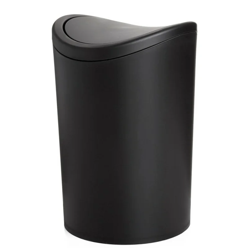 Pattumiera in polipropilene da bagno nero 6Lt con coperchio basculante