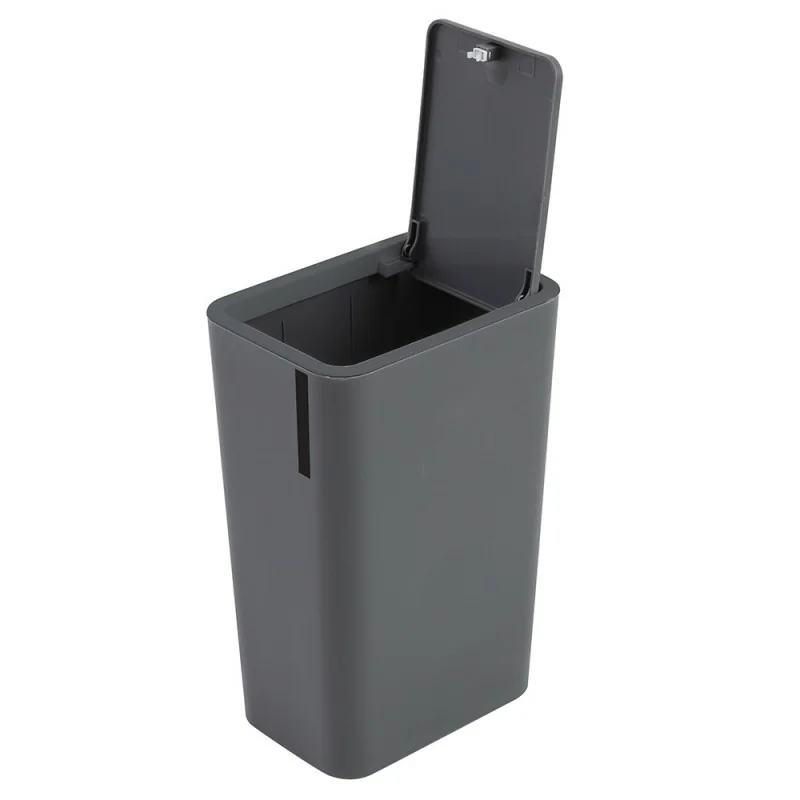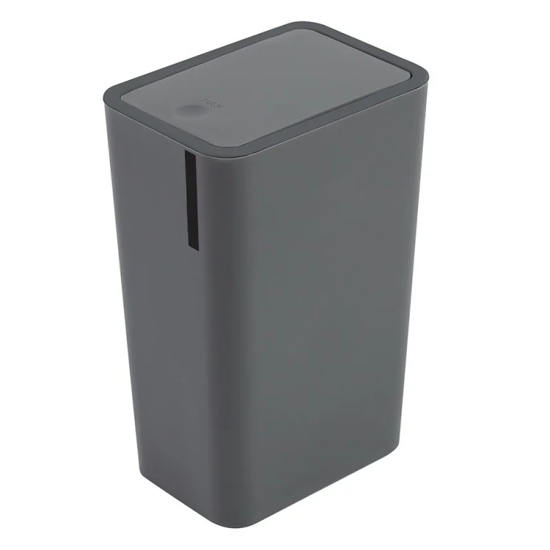 Cestino bagno dalla capienza di 8 litri in plastica solida e resistente grigia con coperchio Push & Pull