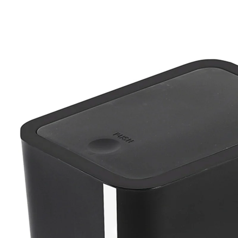 Cestino bagno da 8 litri in plastica nera con coperchio Push