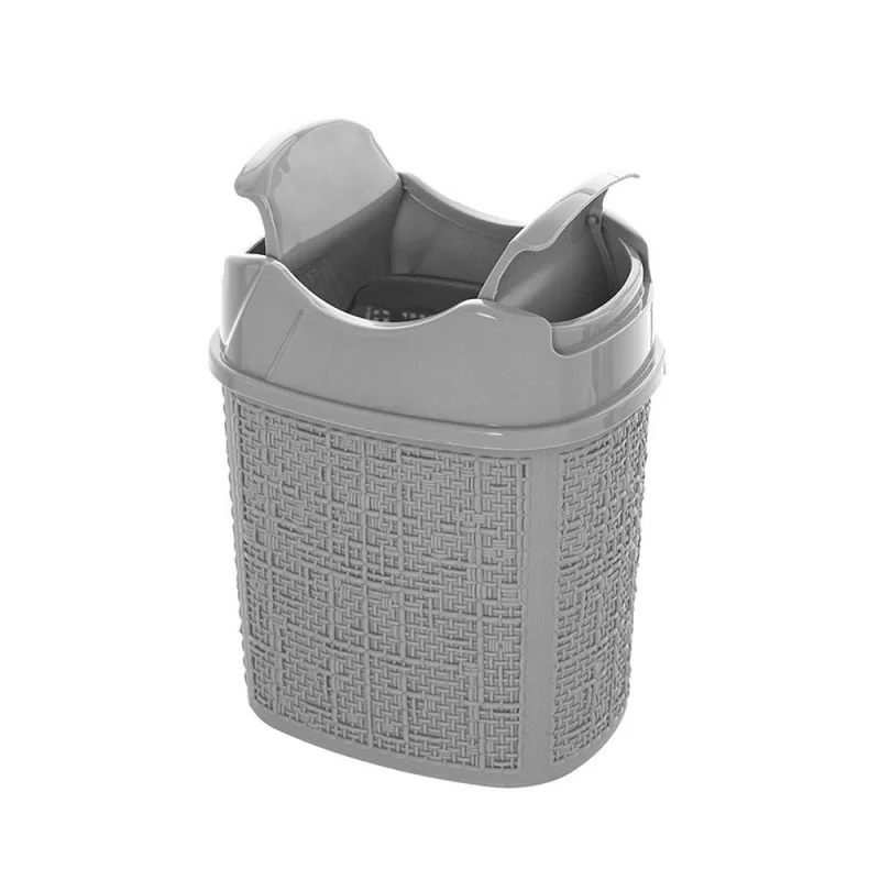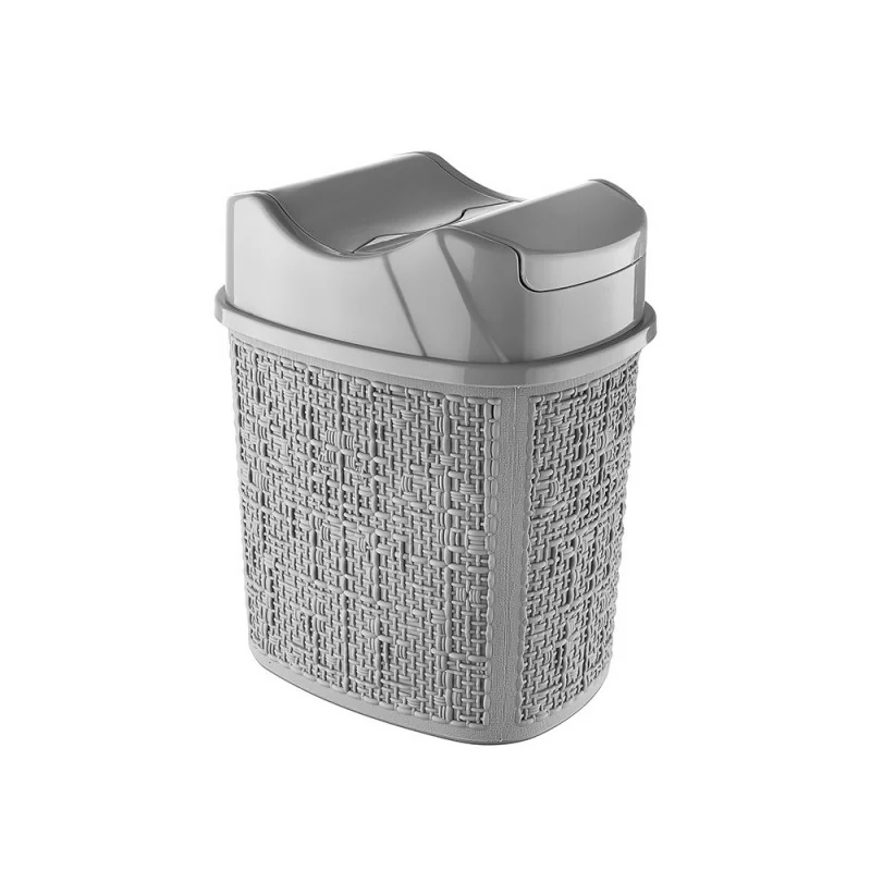 Progettato per ogni ambiente domestico, questo cestino da 5 litri in plastica ecologica e resistente dalla finitura grigia presenta un'elegante texture a intreccio. Dotato di un doppio coperchio basculante, offre una soluzione pratica e discreta per la gestione dei rifiuti. Ideale per ottimizzare lo spazio e l'igiene in ogni ambiente dallo stile moderno.