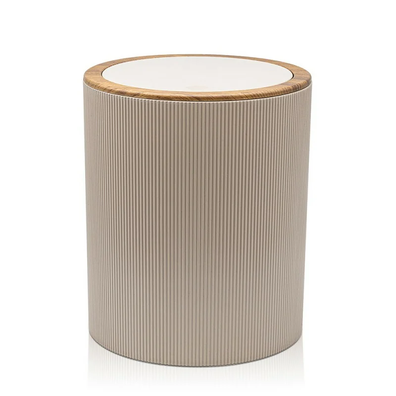 Pattumiera 5lt Tortora coperchio basculante dettagli effetto legno serie Blob