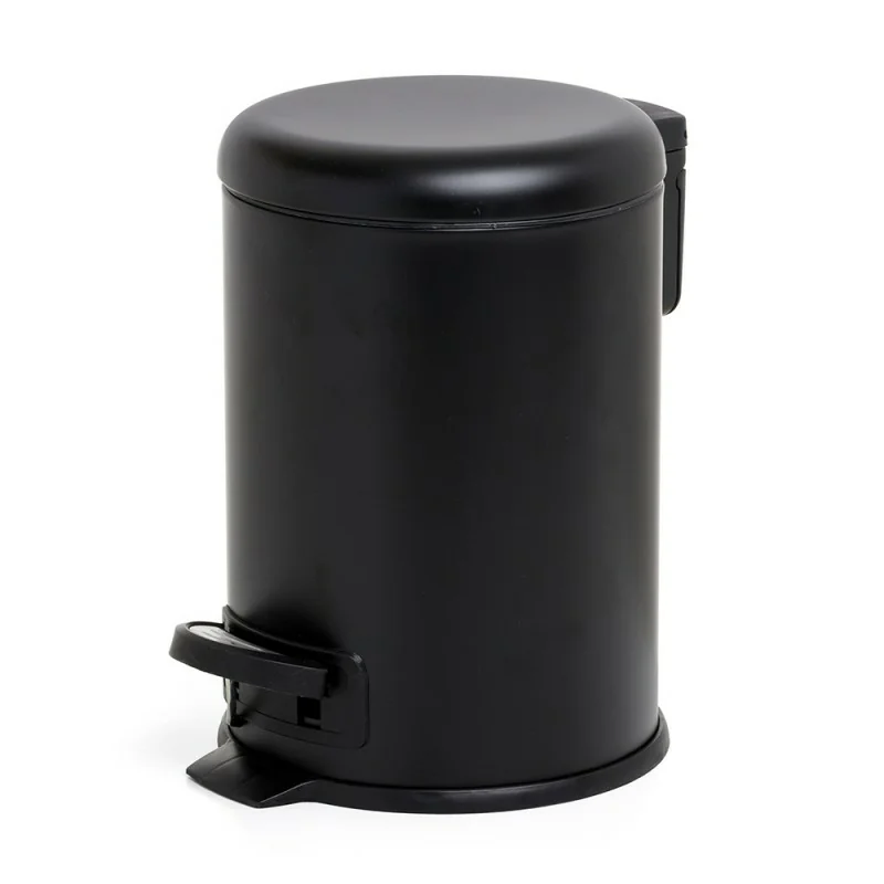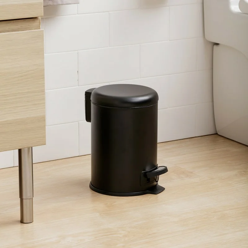 Pattumiera per bagno con pedale in acciaio inox colore nero, capacità 3L e secchio interno estraibile con manico