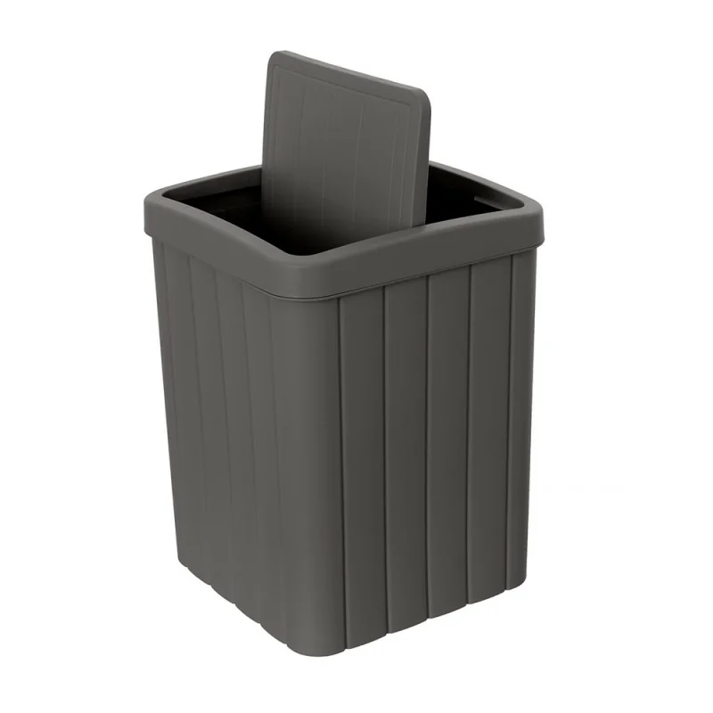 Pattumiera bagno – linea Buzz in plastica antracite effetto legno capacità 10 lt con coperchio basculante