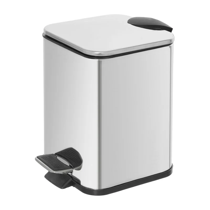 Grazie alla forma compatta e funzionale,la pattumiera bagno proposta convince con il suo design semplice e salvaspazio,il complemento ideale per ogni arredo bagno,realizzato con l’impiego dell’acciaio resistente e della plastica igienica.