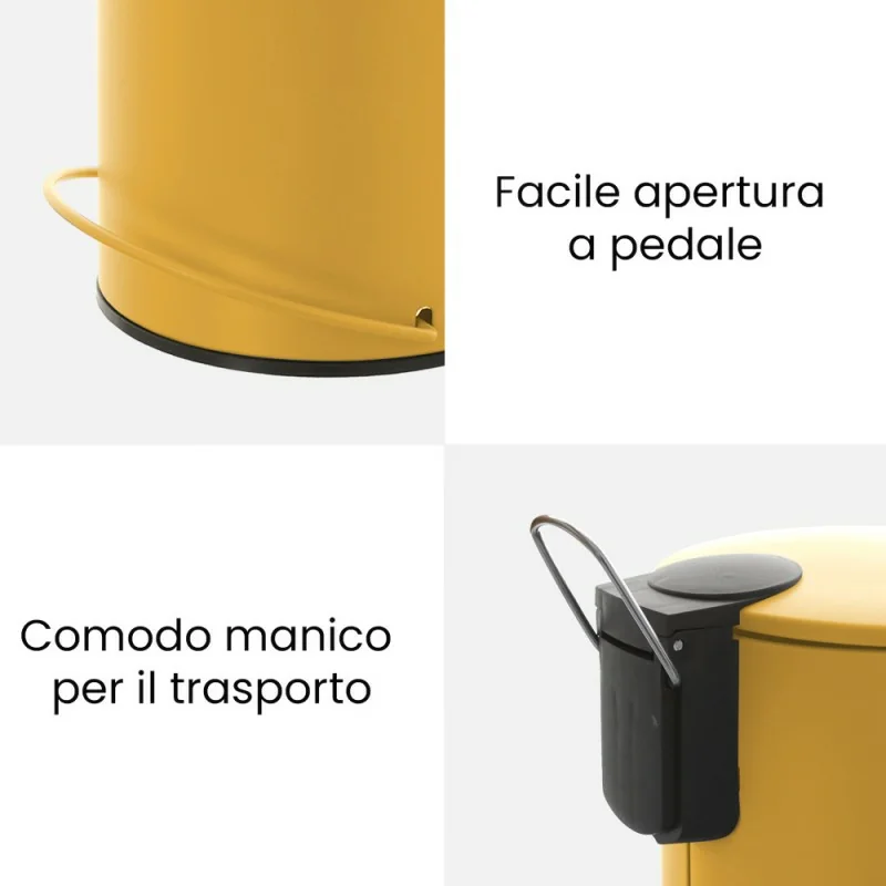 Cestino portarifiuti 3 litri con apertura a pedale e manico per il trasporto, disponibile in diverse colori   Realizzata con texture opaca...