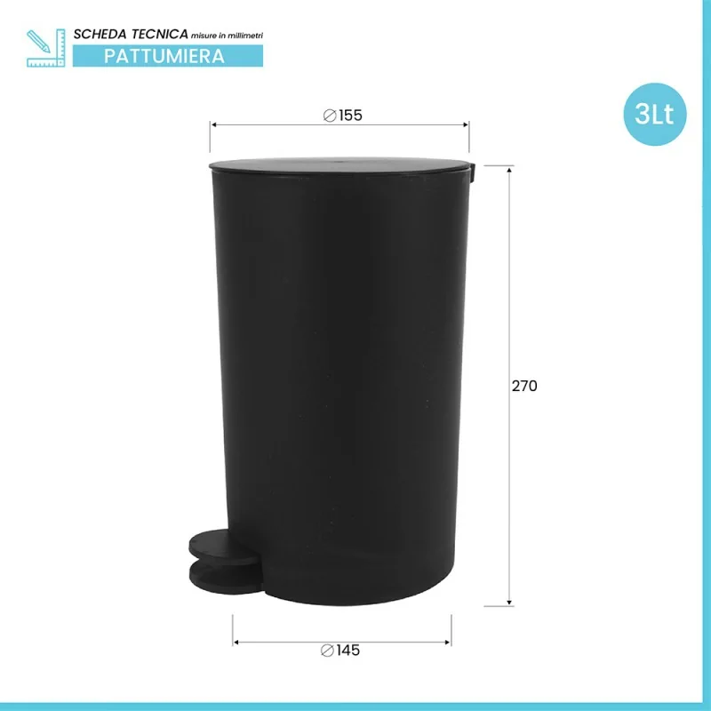 Pattumiera bagno 3 L in polipropilene nero con apertura a pedale Orbix Scheda tecnica Pattumiera bagno 3 L in polipropilene nero con apertura a pedale Orbix Pattumiera bagno 3 L in polipropilene nero con apertura a pedale Orbix Pattumiera bagno 3 L in polipropilene nero con apertura a pedale Orbix