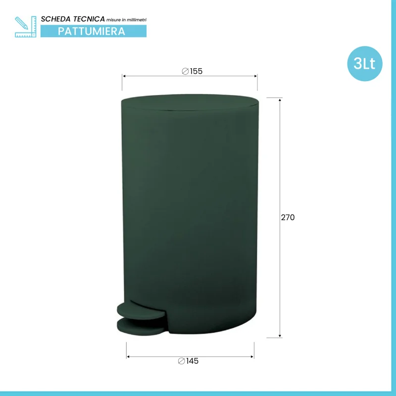 Pattumiera bagno 3 L in polipropilene verde scuro con apertura a pedale Orbix Scheda tecnica Pattumiera bagno 3 L in polipropilene verde scuro con apertura a pedale Orbix Pattumiera bagno 3 L in polipropilene verde scuro con apertura a pedale Orbix Pattumiera bagno 3 L in polipropilene verde scuro con apertura a pedale Orbix