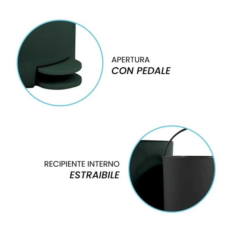 Cestino da bagno 3 Lt verde scuro con apertura a pedale linea Orbix